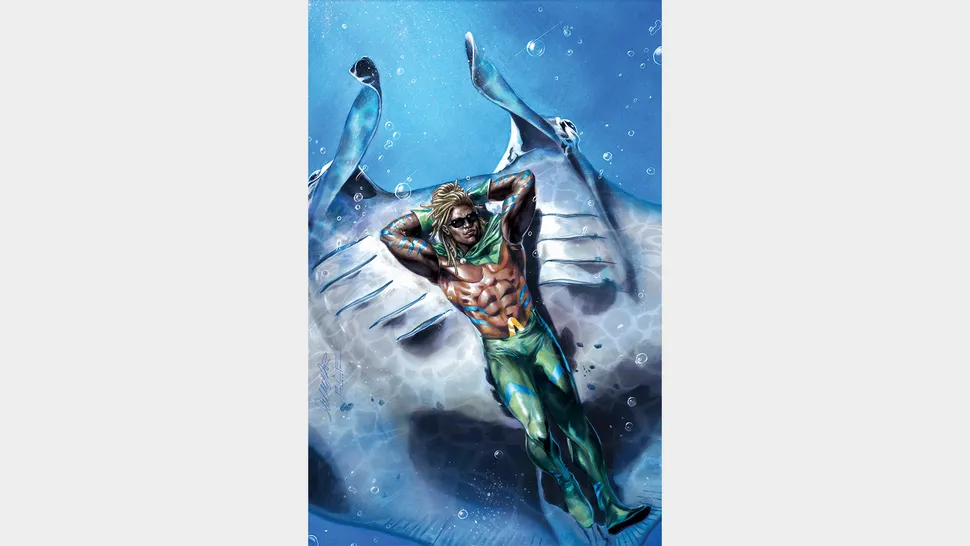 Aquaman heads upstream to uncover the mystery around the infection of the blue...so why does that spark an unholy alliance with a mermaid assassin? And what on earth (or otherwise) does that have to do with sky pirates and prophe-cies?! Revelations run wild as our hero looks for a way home before he’s seduced by the great blue beyond!