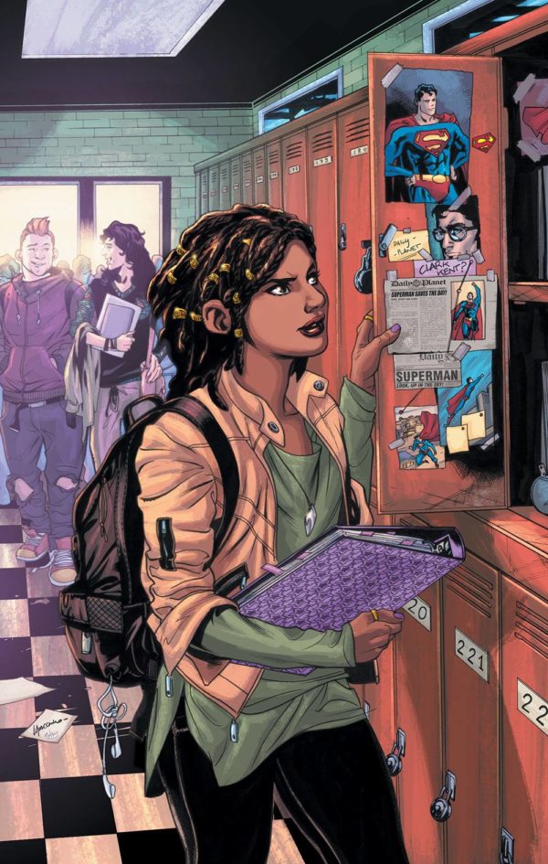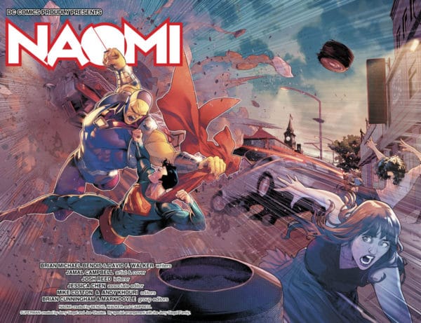 DC's biggest, newest mystery starts here! When a fight between Superman and Mongul crashes into a small Northwestern town, Naomi (last name?) begins a quest to uncover the last time a super-powered person visited her home--and how that might tie into her own origins and adoption. Follow Naomi's journey on a quest that will take her to the heart of the DC Universe and unfold a universe of ideas and stories that have never been seen before. Join writers Brian Michael Bendis, David Walker and breakout artist Jamal Campbell in Wonder Comics' massively ambitious new series and star...Naomi.