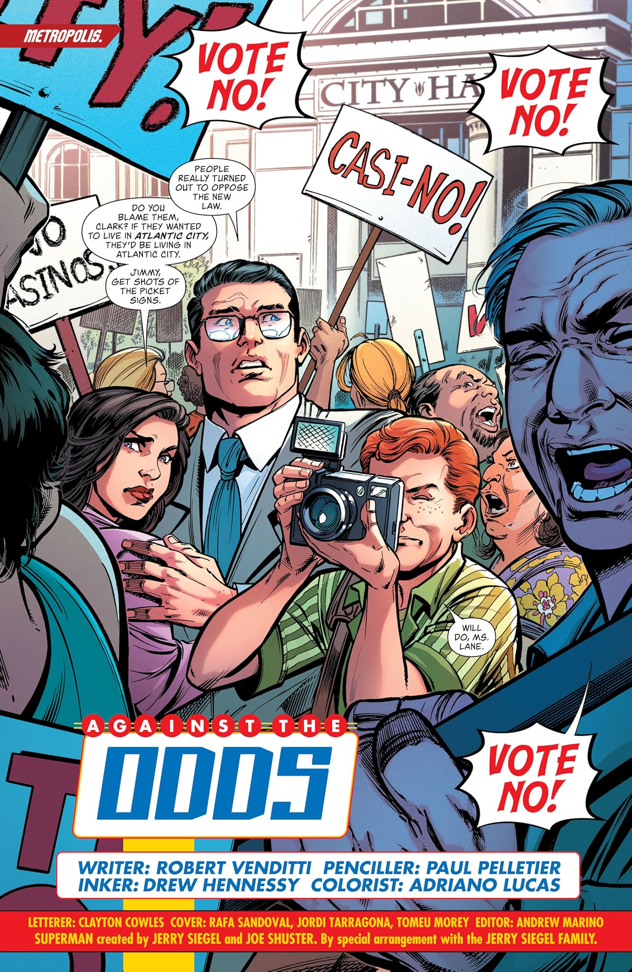 Someone is running bets on Superman’s exploits throughout Metropolis and putting ordinary citizens in harm’s way. Can Superman locate this villainous gambler in time or will the house take all?!