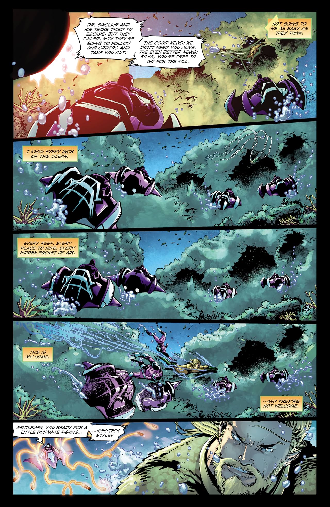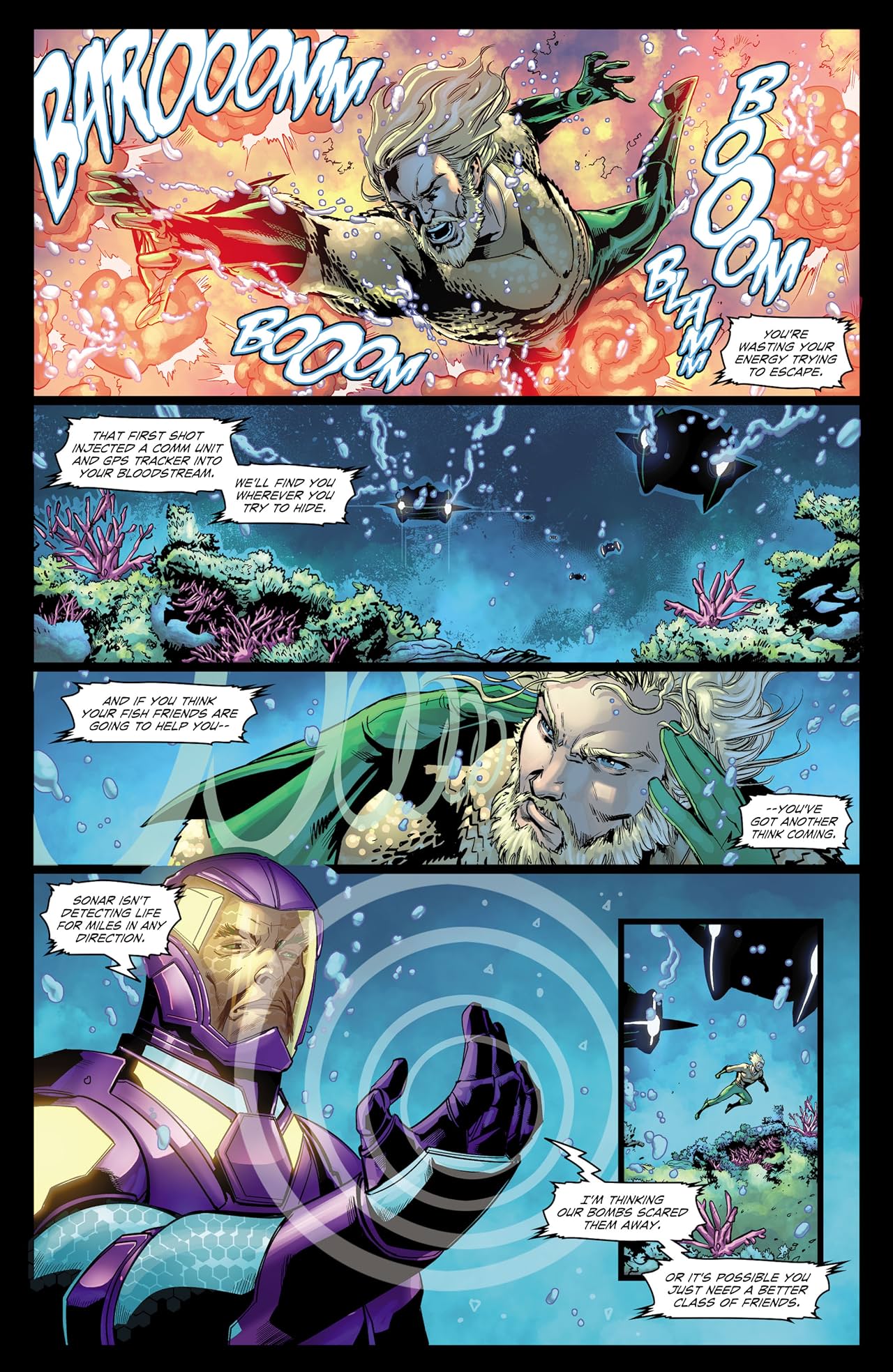 and forcing Aquaman, Mera, and the Navy officers to save the pod before