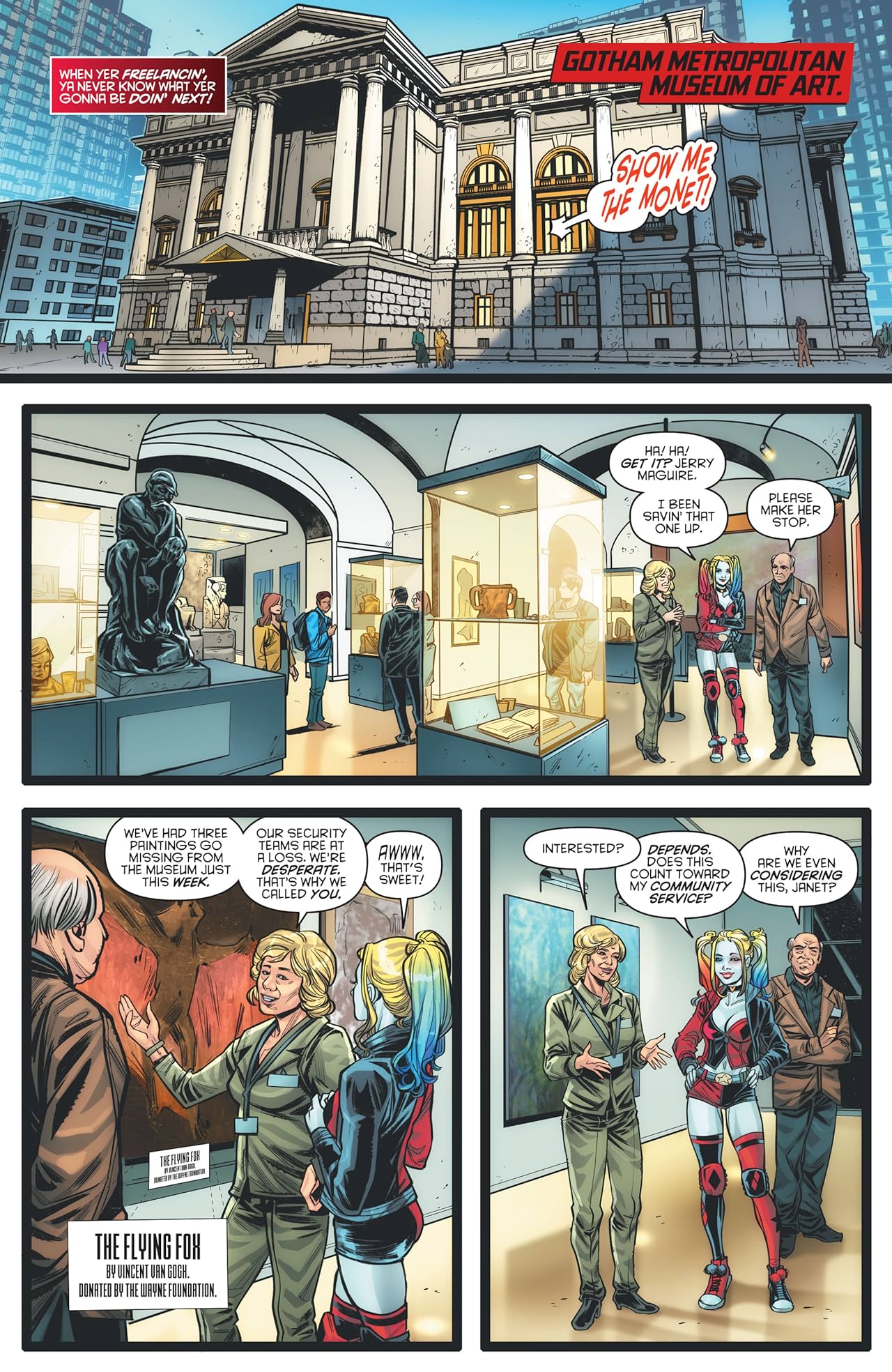 tracking down stolen art from the Gotham Art Museum...but when it turns