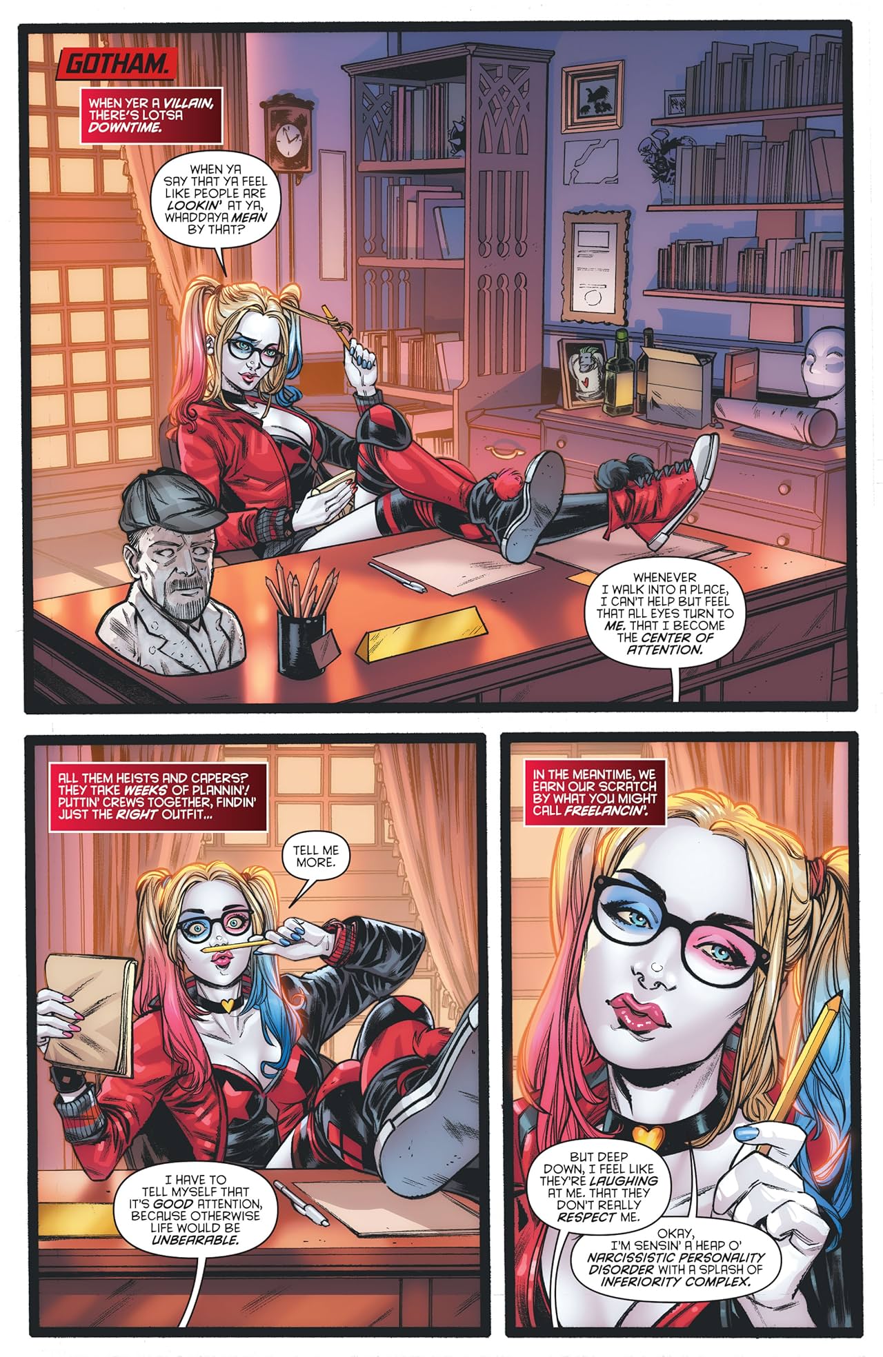 Harley takes on odd jobs in her many wheelhouses—therapizing bad guys,