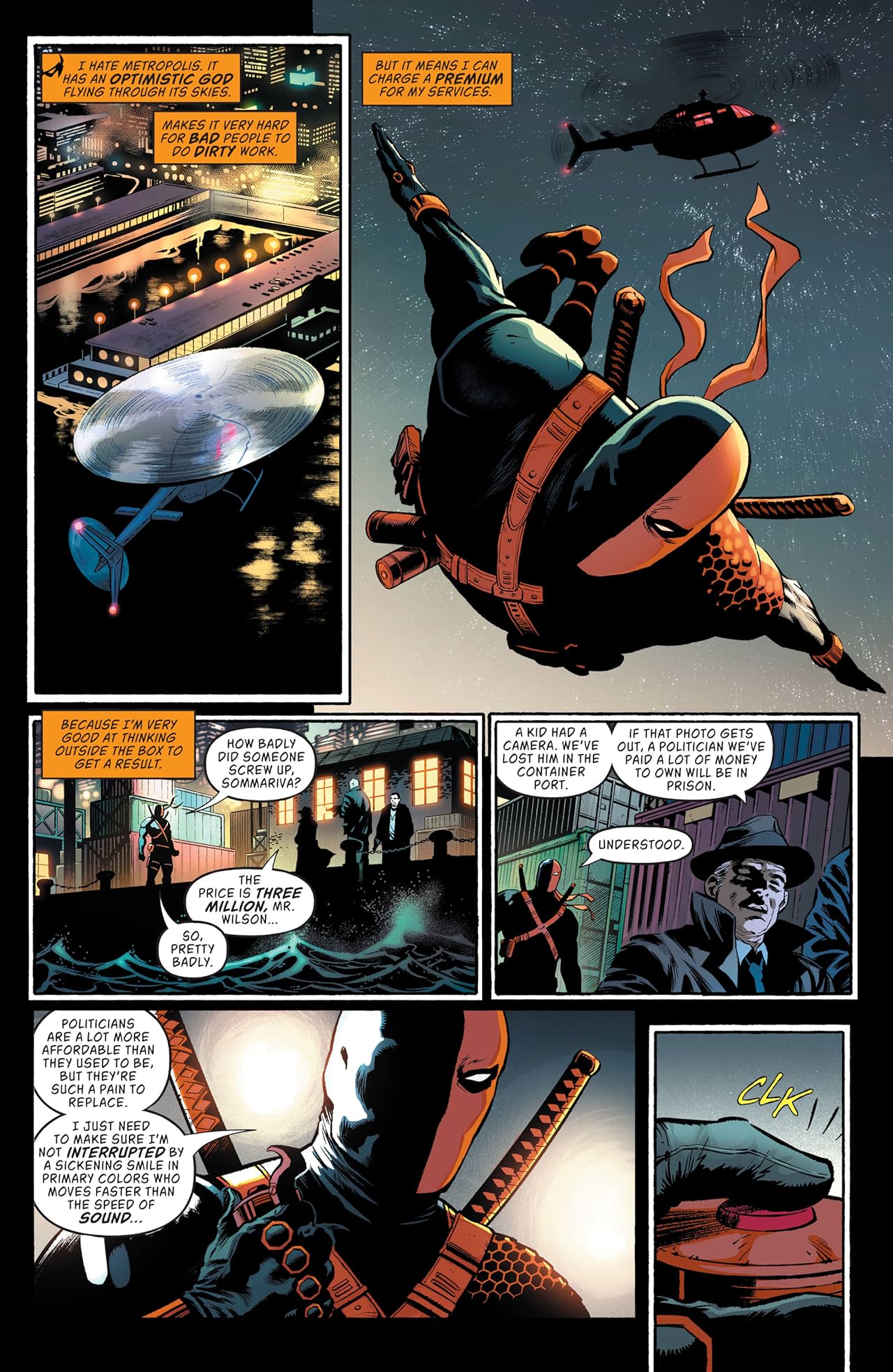 Deathstroke is hired to take out the only witness to a corrupt politician’s mob ties, but his newest mark has some friends in high places...