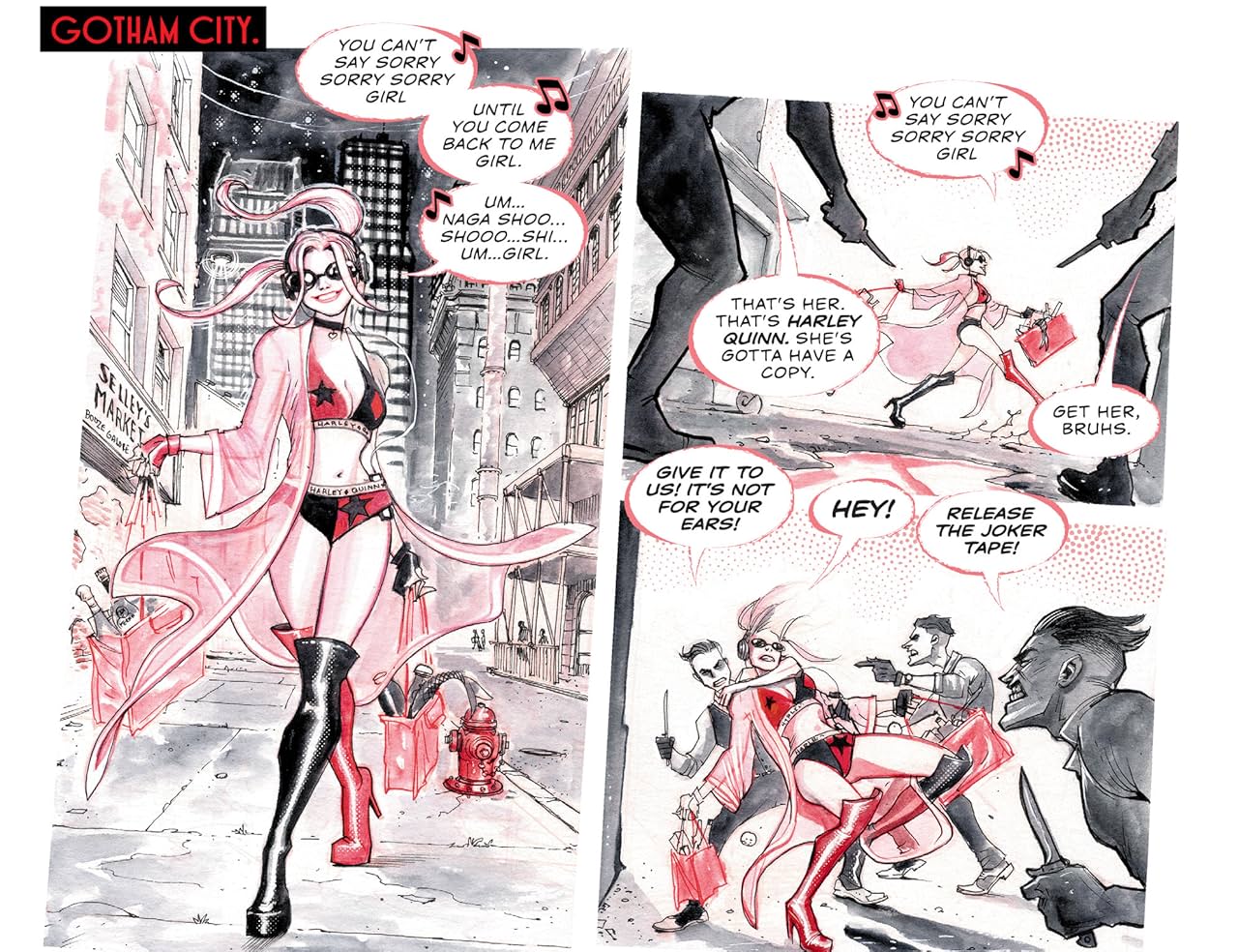 The Joker is a master of many things, but one of them is not the mic. When a mythical recording of the Joker’s disastrous rapping turns up as the grand prize in Gotham City’s most elite rap battle tournament, Harley Quinn enters the contest to win this most excellent way to humiliate her awful ex. But who are Gotham’s fiercest rappers? Can Harley Quinn hold her own? The answers will shock you.