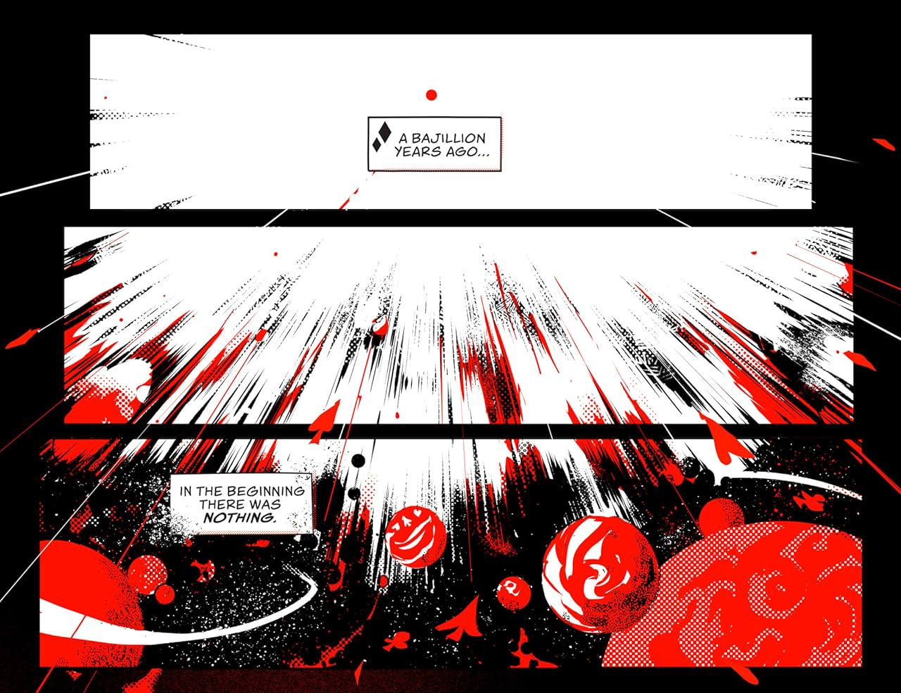 It’s the history of the life, the universe, and everything as told by HARLEY QUINN! From the big bang all the way to the end of the world! This one has got it all! Spaceships, parades, prison breaks, copious amounts of costume changes and most importantly: Harley, Harley, and more Harley!