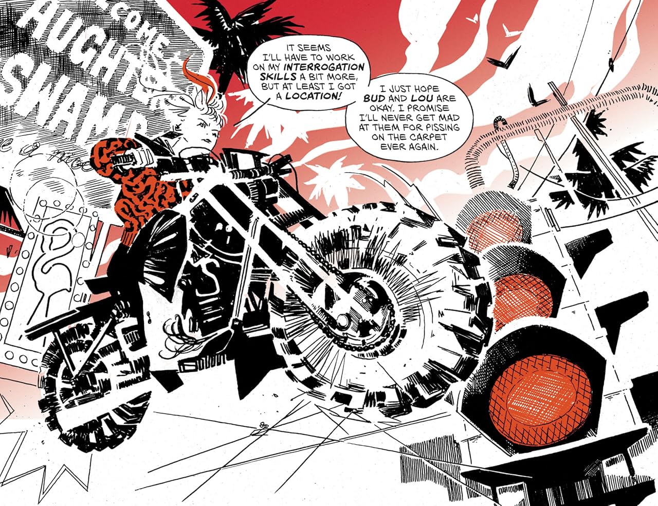 Harley was trying to take a nice and quiet post-breakup vacation into the SLAUGHTER SWAMP, but disaster strikes when a bunch of creeps kidnap her beloved hyenas Bud and Lou. Time for her to put a very particular set of skills to use and kick some ass!