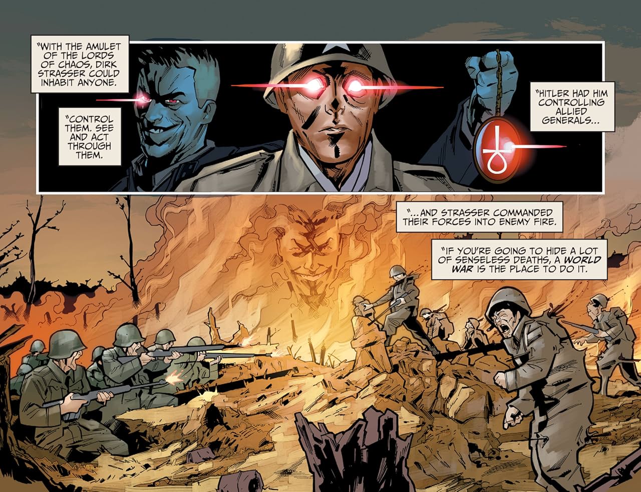 We all know Hitler shot himself, but what many don’t know…is why. Discover the morally ambiguous secret safely kept by the JSA about how they ended WWII by using an amulet that was found in the hands of the enemy.