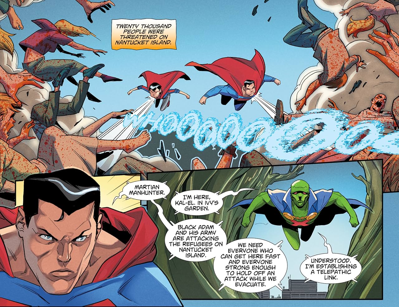 It’s all out war as the heroes fight to save the thousands of refugees…but what fresh victims will the mighty Anti-Life Army take or turn?! Will this be the final stand of the junior Trinity?!