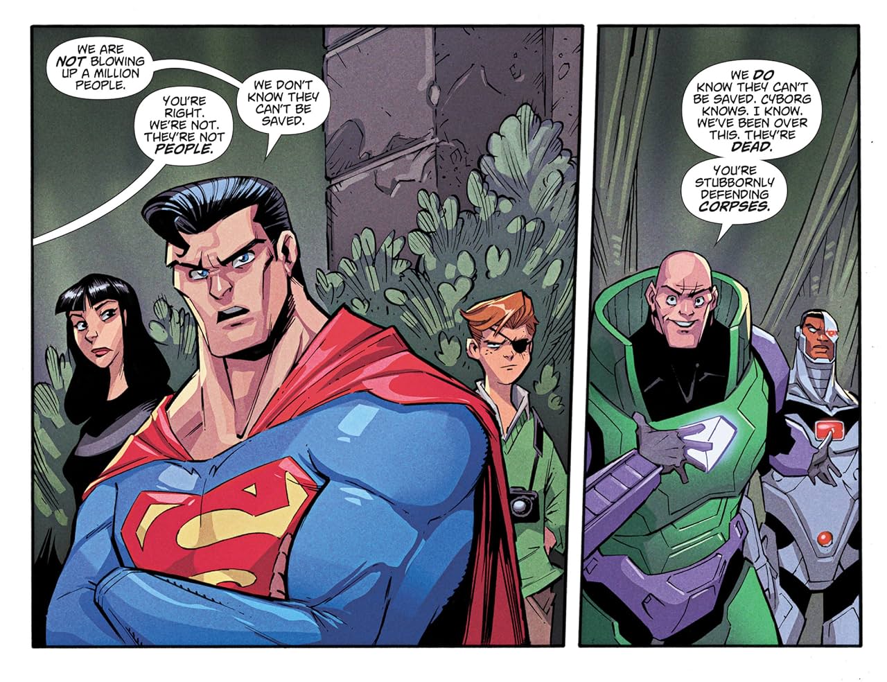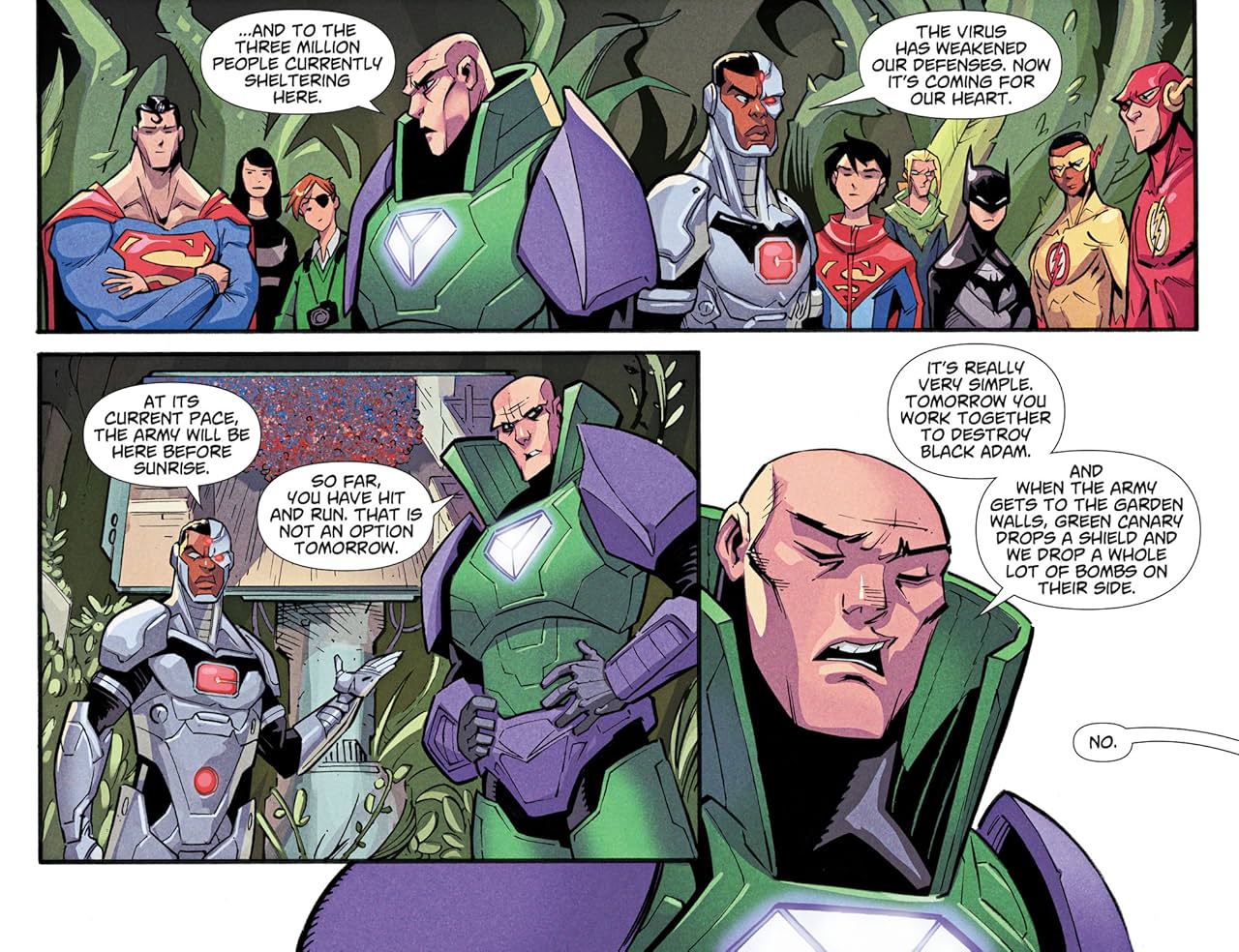 The Anti-Life Army has reached the shores of America and they’re cutting a path of destruction toward Gotham! Lex Luthor has a plan, though, that might just save the world …but are the heroes ready for the sacrifice?