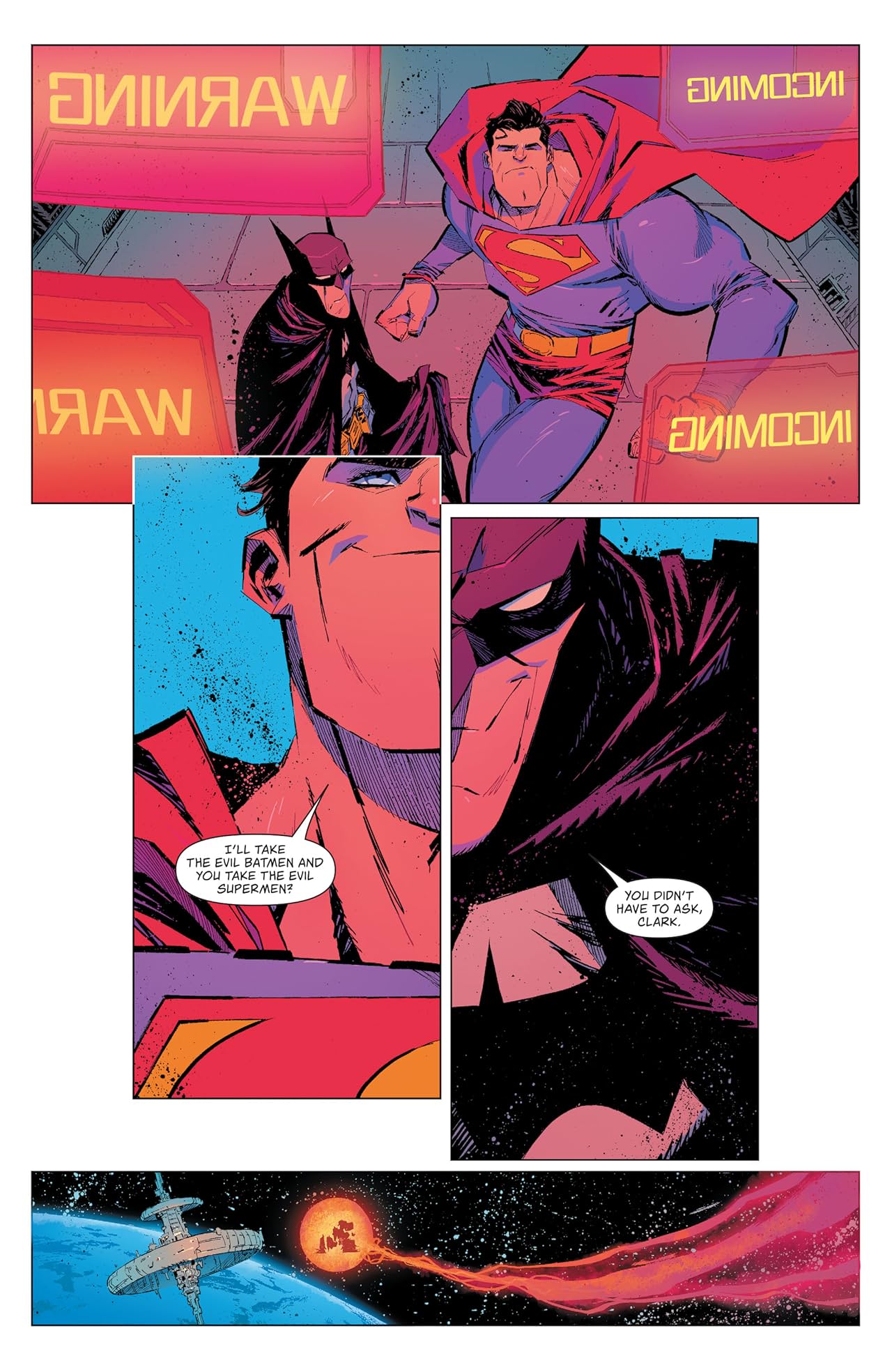 During a heated argument, the Man of Steel and the Dark Knight are ambushed by a cadre of evil Multiversal doppelgangers. It’s Batman versus Superman in this no-holds barred brawl between good and evil!