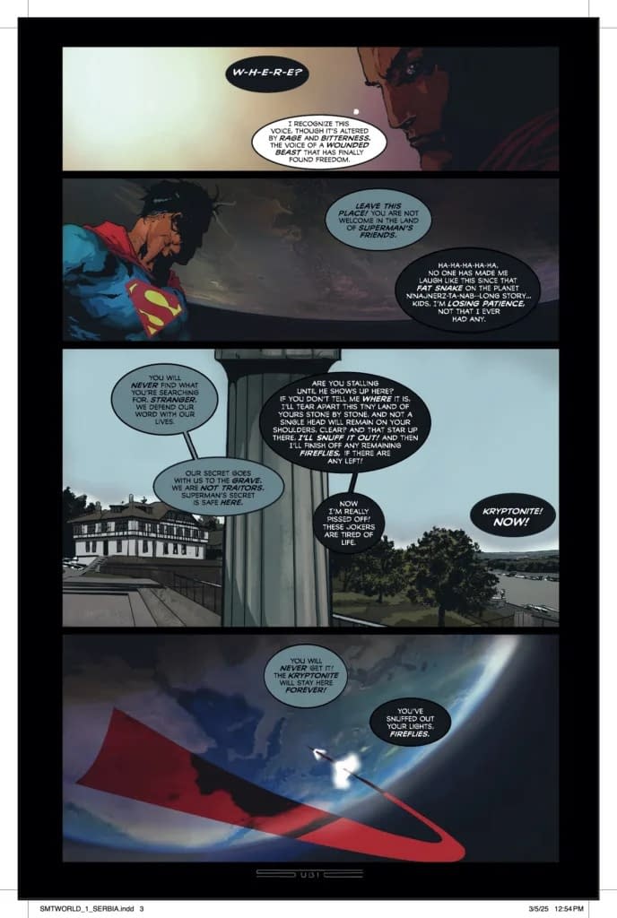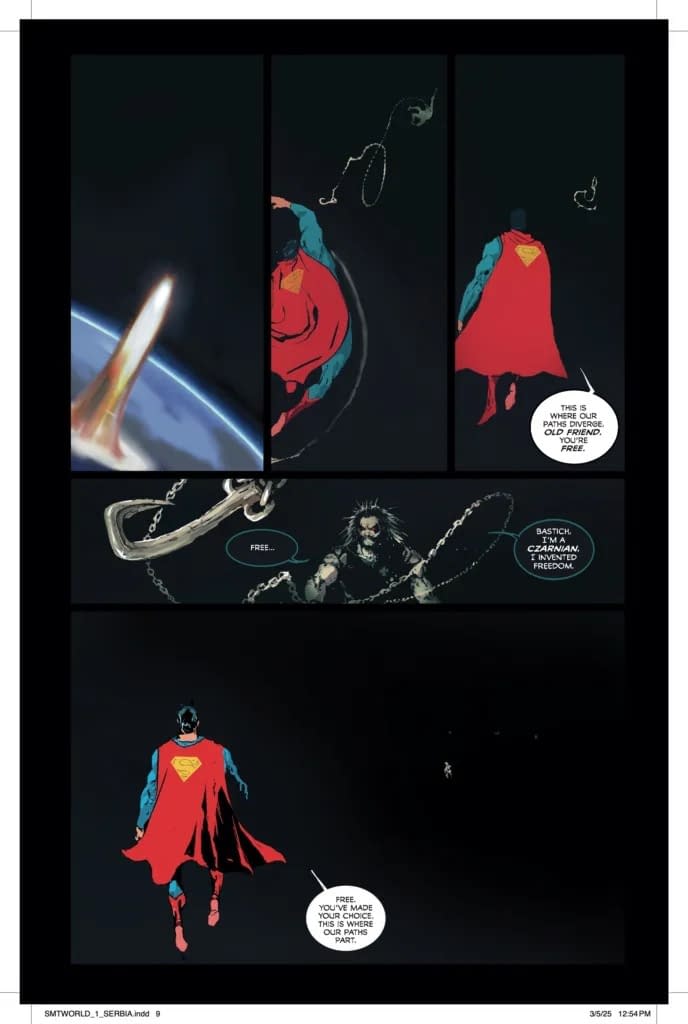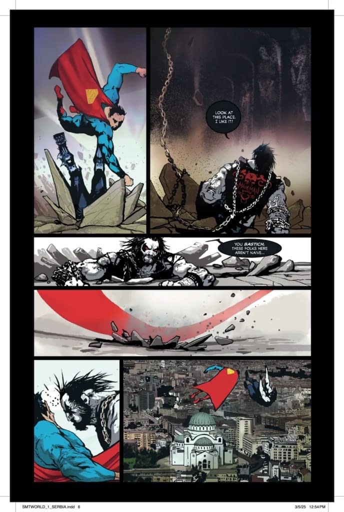 Previsto para sair em junho nos Estados Unidos, “Superman: O Mundo” terá 184 páginas e quinze equipes criativas representando Brasil, Estados Unidos, México, França, Espanha, Sérvia, Bósnia, Montenegro, Turquia, Índia, Camarões, Polônia, Tchéquia, Eslováquia e Argentina. A Panini anunciou que também publicará a obra no Brasil.